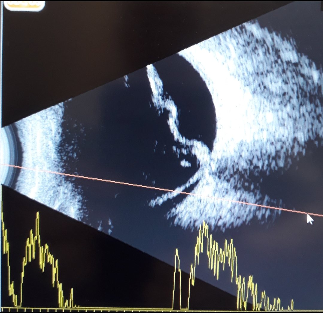 A mod ultrasonografi için göze anestezik damla damlatılır. Çok hassas olan göz yüzeyi uyuşturulduktan sonra korneaya A mod probu değdirilerek gözün ön arka aksının boyu ölçülür. Ön arka aksın boy ölçümü bazı ameliyatlar için gereklidir.