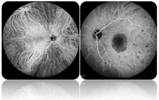 Koroid, retina altındaki damarlardan zengin tabakadır. İndosiyanin yeşili anjiografisi, göz bebekleri damlalar yardımı ile büyütüldükten sonra indosiyanin boyasının kol toplardamarlarından birine verilmesi sonrasında özellikle koroid ve aynı zamanda retinanın damarsal yapısının görüntülenmesi işlemidir.